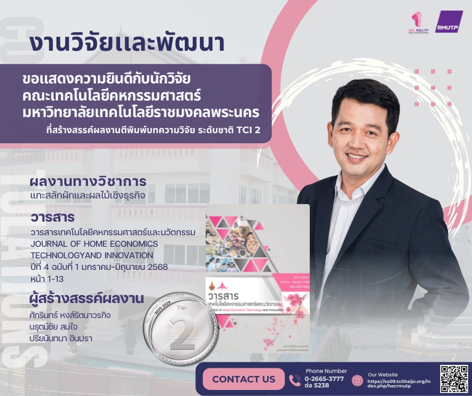 🎉🎉 ขอแสดงความยินดีกับนักวิจัยคณะเทคโนโลยีคหกรรมศาสตร์ มหาวิทยาลัยเทคโนโลยีราชมงคลพระนคร ที่สร้างสรรค์ผลงานตีพิมพ์บทความวิจัย ระดับชาติ TCI 2🎉🎉 ขอแสดงความยินดีกับนักวิจัยคณะเทคโนโลยีคหกรรมศาสตร์ มหาวิทยาลัยเทคโนโลยีราชมงคลพระนคร ที่สร้างสรรค์ผลงานตีพิมพ์บทความวิจัย ระดับชาติ TCI 2ข่าวงานวิจ […]