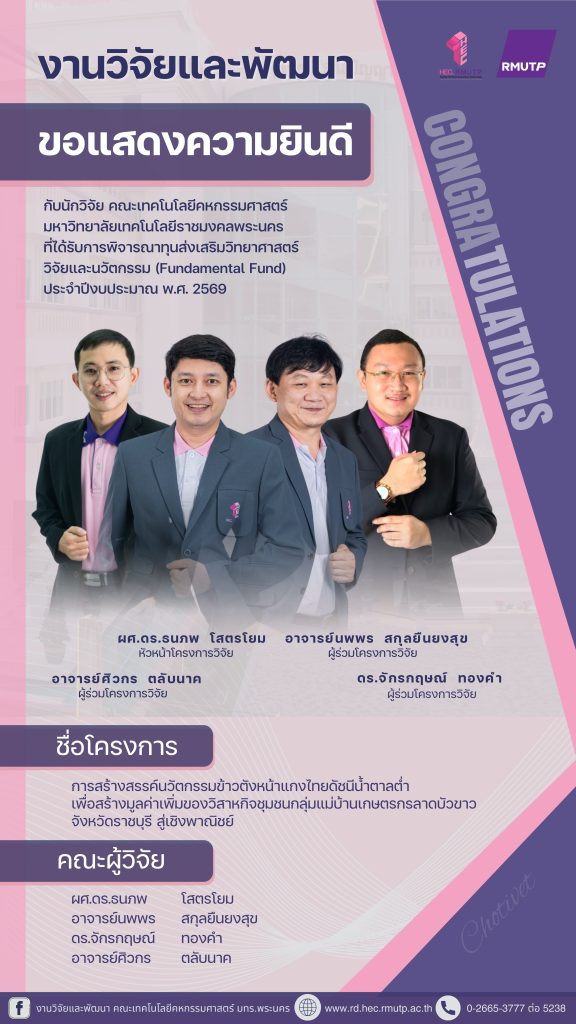 ขอแสดงความยินดีกับนักวิจัยที่ได้รับทุนสนับสนุนจากงบประมาณด้านวิทยาศาสตร์ วิจัยและนวัตกรรม ประเภท ทุนสนับสนุนงานมูลฐานประจำปีงบประมาณ พ.ศ. 2569ขอแสดงความยินดีกับนักวิจัยที่ได้รับทุนสนับสนุนจากงบประมาณด้านวิทยาศาสตร์ วิจัยและนวัตกรรม ประเภท ทุนสนับสนุนงานมูลฐานประจำปีงบประมาณ พ.ศ. 2569งานวิจัยแล […]