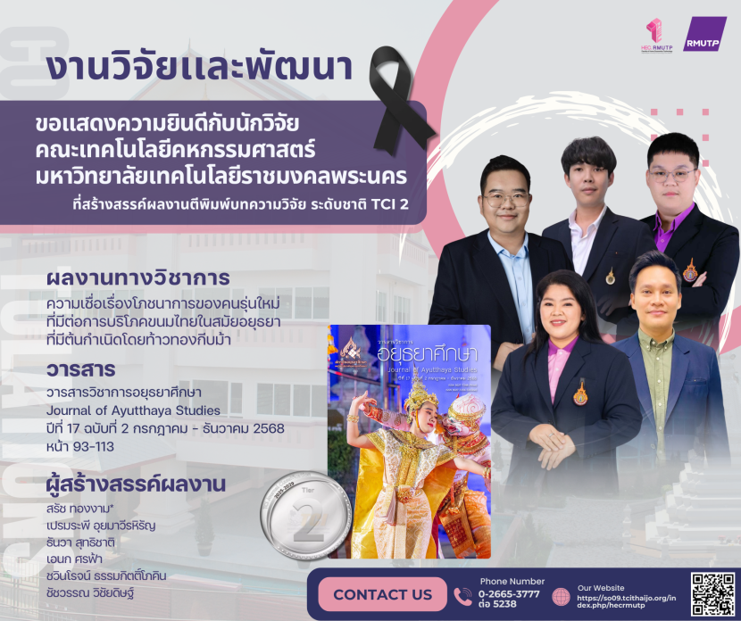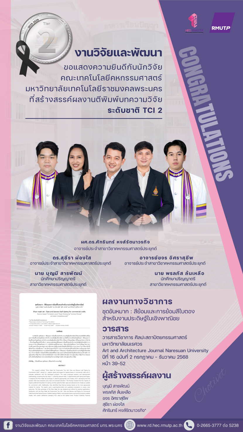 ขอแสดงความยินดีกับนักวิจัย และนักศึกษาคณะเทคโนโลยีคหกรรมศาสตร์ มหาวิทยาลัยเทคโนโลยีราชมงคลพระนคร ที่ได้รับจัดสรรงบประมาณกองทุนเพื่อการวิจัย ประจำปีงบประมาณ 2569 Posted ธันวาคม 1, 2025ธันวาคม 1, 2025 angsana.anPosted in ข่าวประชาสัมพันธ์ ขอแสดงความ […]