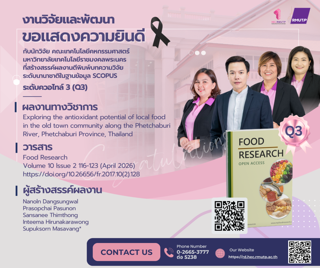 ขอแสดงความยินดีกับนักวิจัยคณะเทคโนโลยีคหกรรมศาสตร์ มหาวิทยาลัยเทคโนโลยีราชมงคลพระนคร ที่สร้างสรรค์ผลงานตีพิมพ์บทความวิจัย ระดับนานาชาติ TCI 1ขอแสดงความยินดีกับนักวิจัยคณะเทคโนโลยีคหกรรมศาสตร์ มหาวิทยาลัยเทคโนโลยีราชมงคลพระนคร ที่สร้างสรรค์ผลงานตีพิมพ์บทความวิจัย ระดับนานาชาติ TCI 1ข่าวงานวิจ […]
