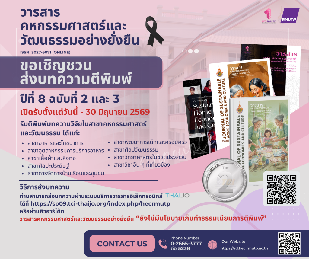 ขอแสดงความยินดีกับนักวิจัยคณะเทคโนโลยีคหกรรมศาสตร์ มหาวิทยาลัยเทคโนโลยีราชมงคลพระนคร ที่สร้างสรรค์ผลงานตีพิมพ์บทความวิจัย ระดับนานาชาติ TCI 1ขอแสดงความยินดีกับนักวิจัยคณะเทคโนโลยีคหกรรมศาสตร์ มหาวิทยาลัยเทคโนโลยีราชมงคลพระนคร ที่สร้างสรรค์ผลงานตีพิมพ์บทความวิจัย ระดับนานาชาติ TCI 1ข่าวงานวิจ […]