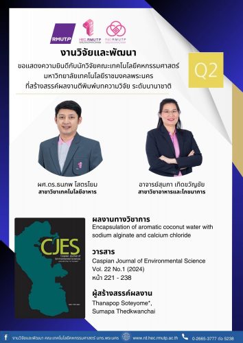 📑ตีพิมพ์บทความวิชาการ เรื่อง “Encapsulation of aromatic coconut water with sodium alginate and calcium chloride”