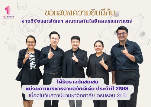 งานวิจัยและพัฒนา ขอแสดงความยินดีกับนักวิจัยที่ได้รับการคัดเลือกเป็นนักวิจัยดีเด่น ประจำปี 2568 เนื่องในวันสถาปนามหาวิทยาลัยครบรอบ 21 ปี ได้แก่